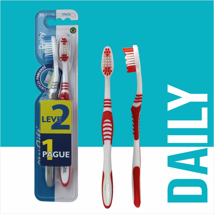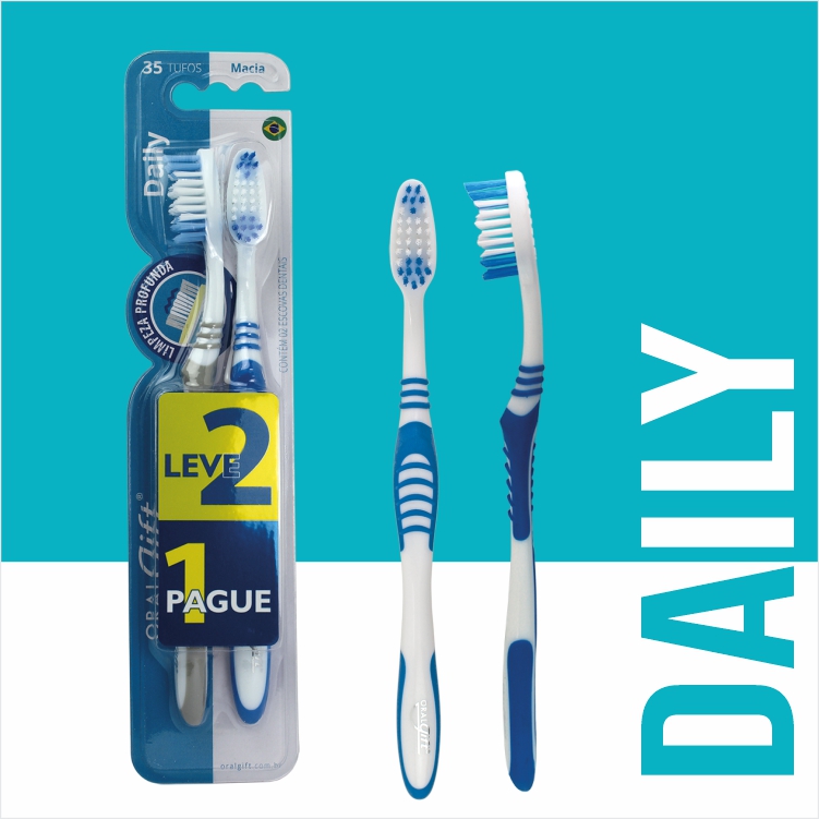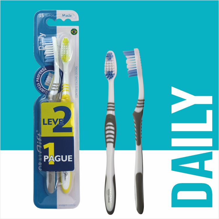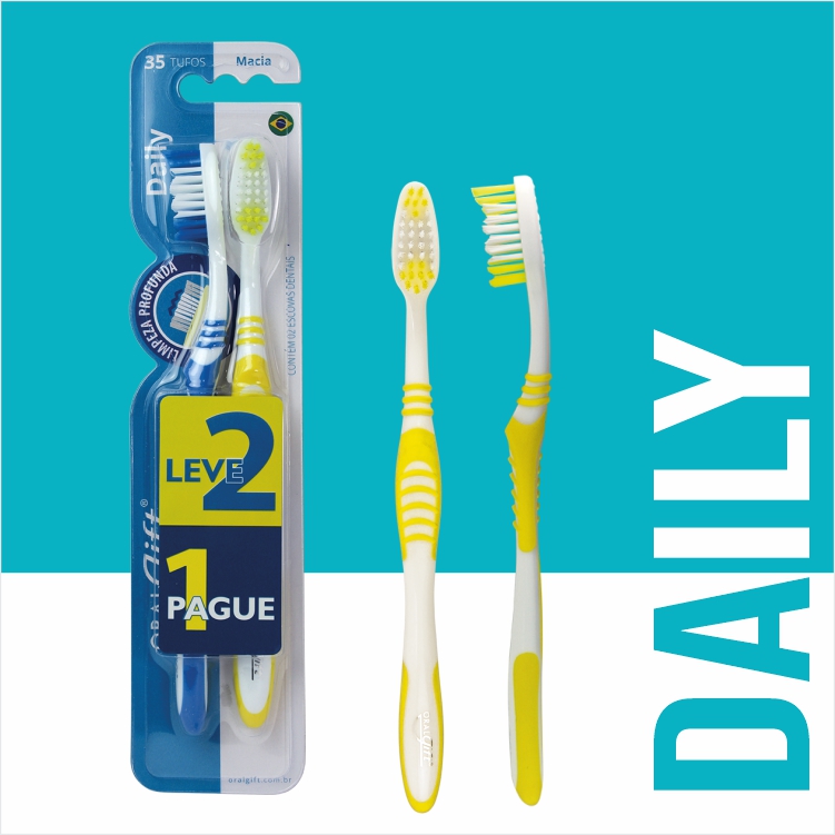 • Cerdas Alongadas na Ponta: Um destaque inovador da Escova Dental Daily são as cerdas alongadas localizadas na ponta da cabeça. Este design inteligente permite um alcance aprimorado e uma limpeza eficaz dos dentes posteriores, áreas frequentemente difíceis de acessar com escovas tradicionais. Esta característica demonstra uma atenção aos detalhes e um entendimento profundo das necessidades de higiene oral dos usuários.