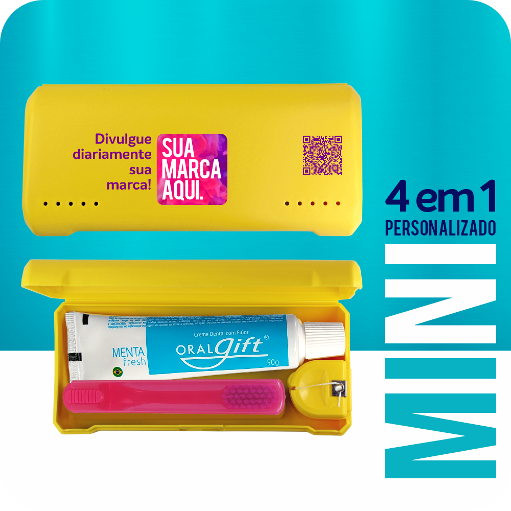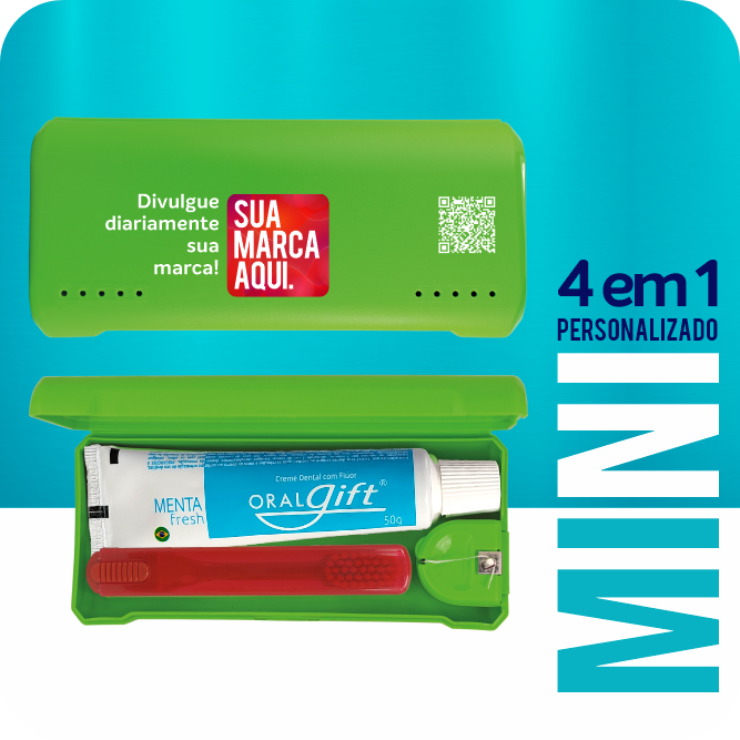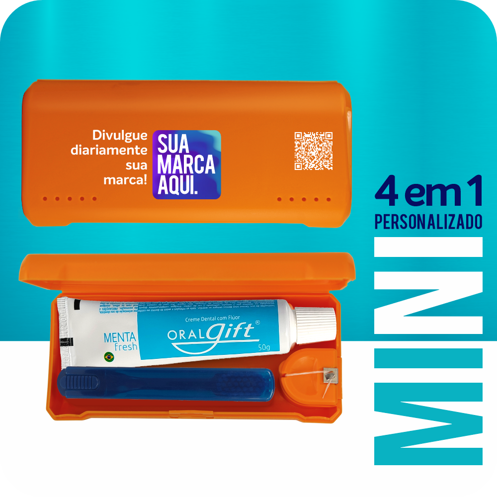 - O KIT DENTAL ORALGIFT MINI 4X1, com dimensões otimizadas para portabilidade, assegura que os itens de higiene bucal estejam sempre acessíveis, seja em casa, no trabalho ou em viagens.