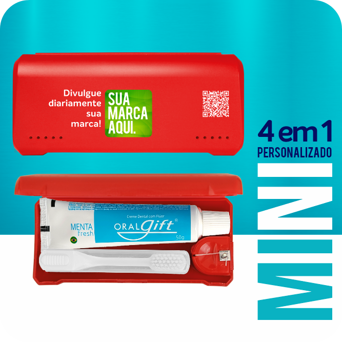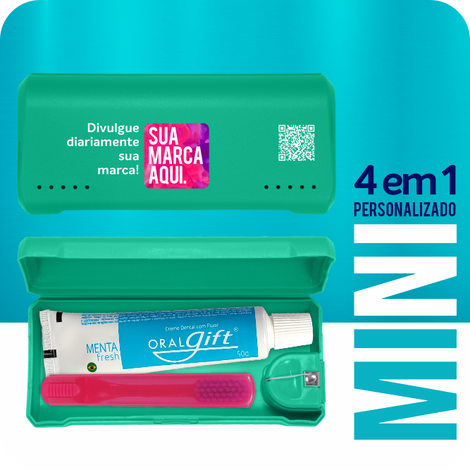 Seja em viagens, no trabalho ou na academia, o KIT DENTAL ORALGIFT MINI 4X1 se adapta ao seu estilo de vida, garantindo que sua rotina de cuidados bucais seja sempre prioridade.