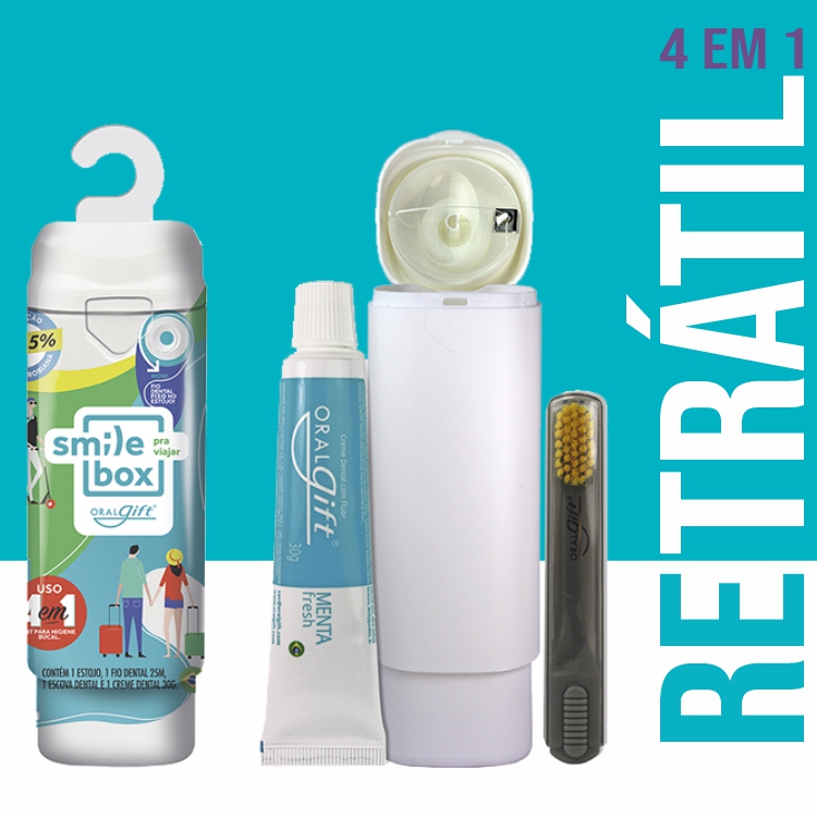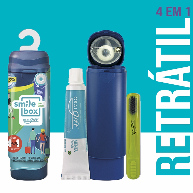 O KIT DENTAL ORALGIFT RETRÁTIL 5X1, é a inovação em higiene bucal que você precisa, aprovado pela ABO, garantindo qualidade e confiança. Com design retrátil inteligente, adapta-se às suas necessidades, oferecendo um conjunto compacto para uso diário ou em viagens.